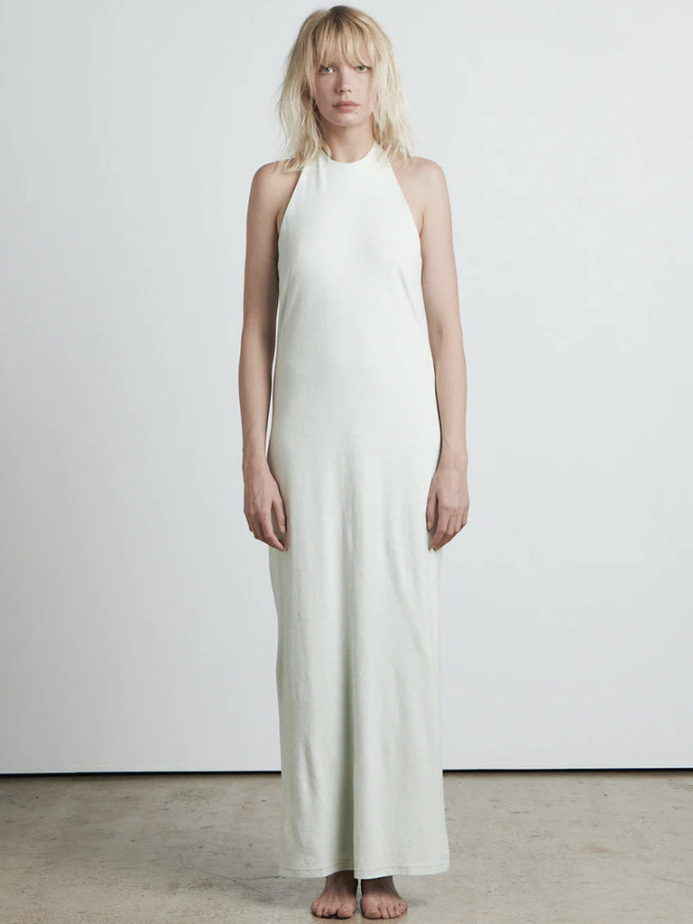 Made from a fine blend of certified organic cotton and high-yield hemp fibre, the halter dress is the ultimate basic: at once comfortable, flattering and infinitely wearable. Made to last in a high-quality fabric with a high neckline and floor-length skirt, this chic maxi features a timeless cut that will never date.