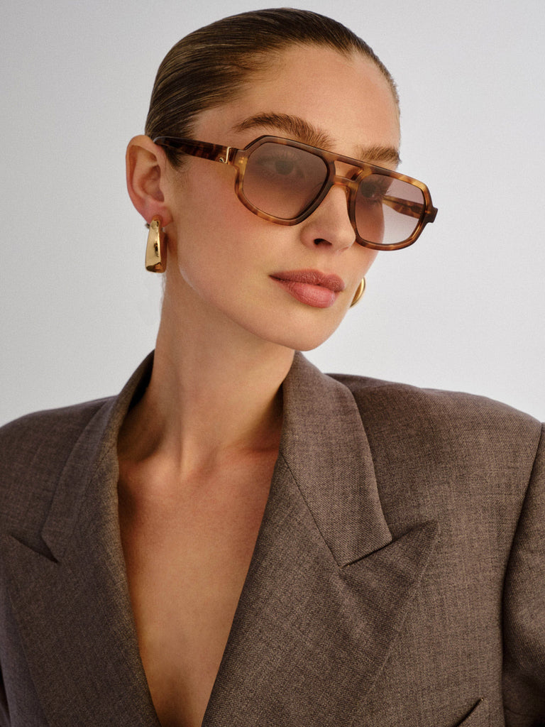 The Banks is an oversized aviator frame designed with thin temples to create a wearable classic silhouette. Featuring Luv Lou’s organic L gold hardware on both temples to elevate this staple.