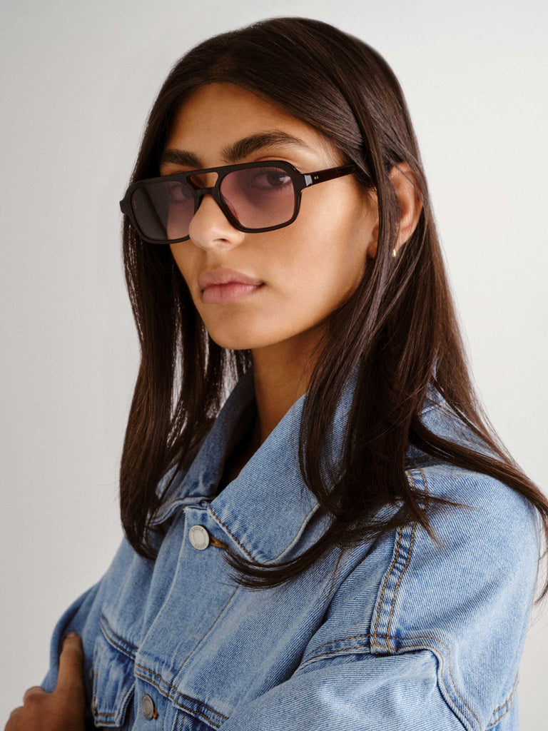 The Dusty is your true vintage aviator frame, large in structure but soft when shaping your face. The style features subtle gold rivets on the outer arm temple and is a nod to the 70's era.